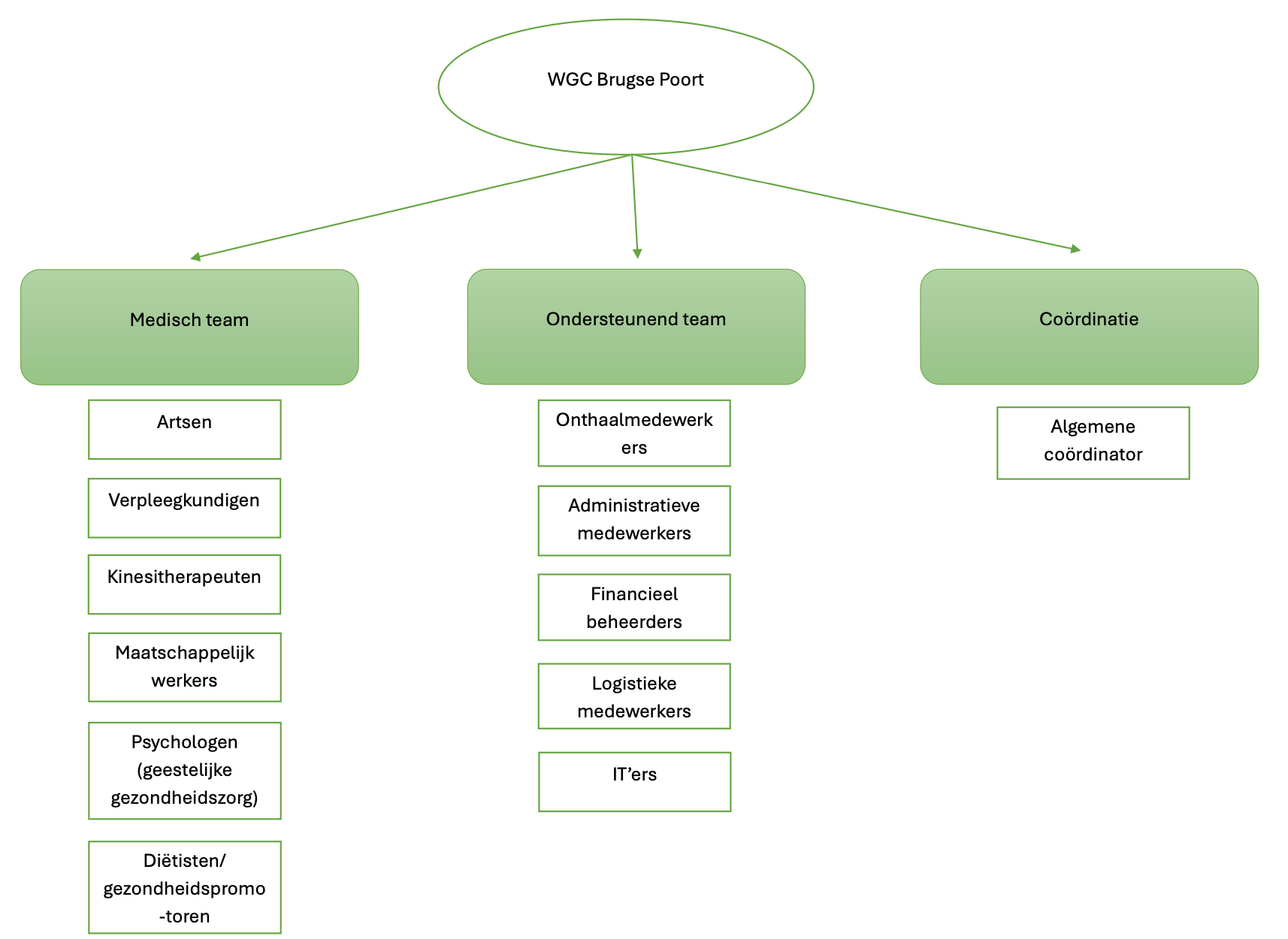 Het WGC Brugse Poort bestaat uit verschillende teams die samen maar ook onderling goed samenwerken in huis: